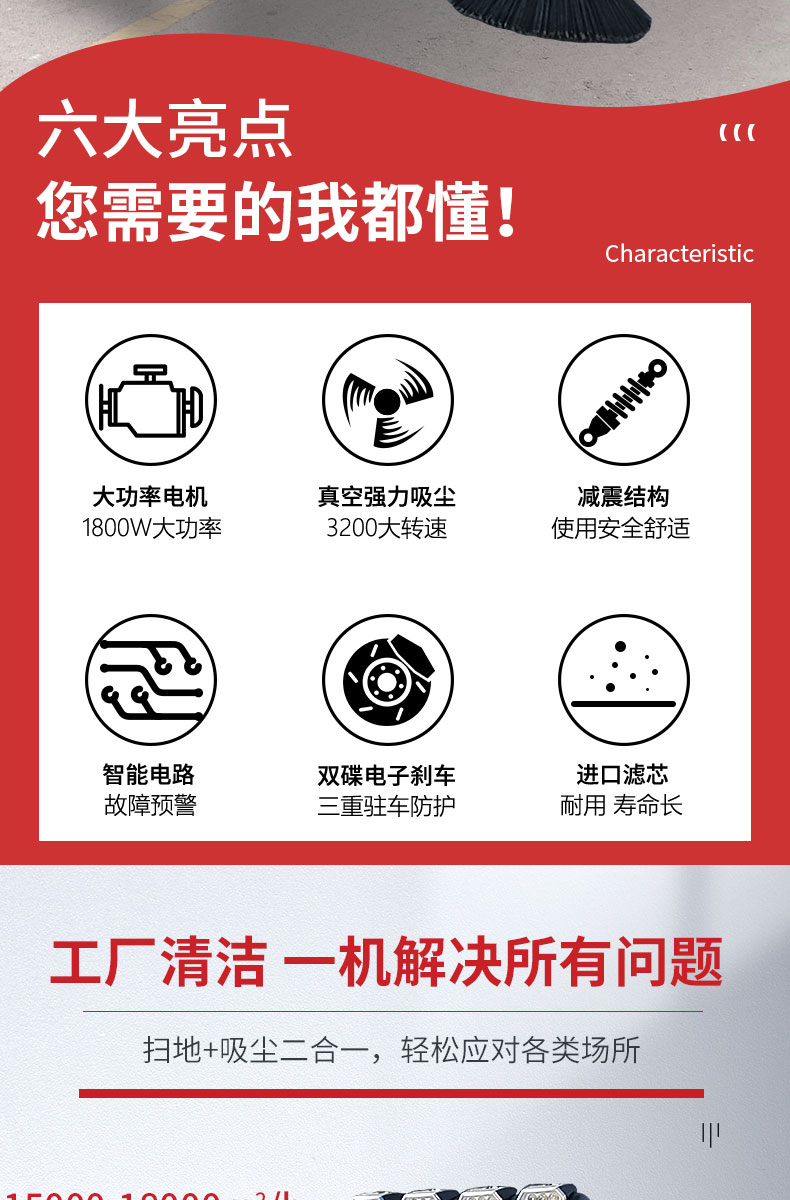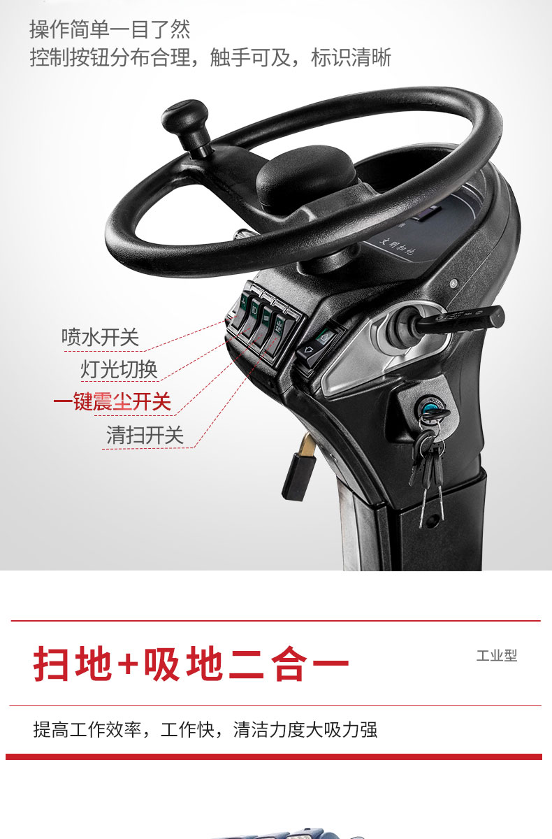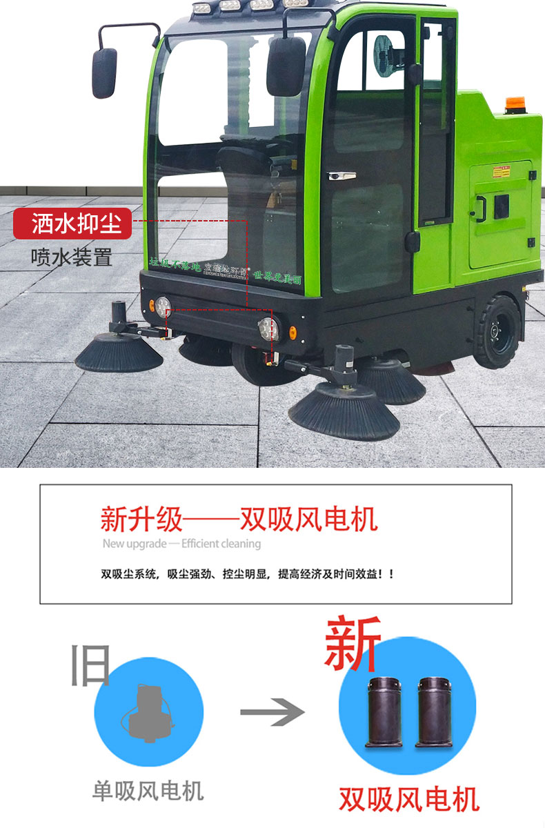 - 產(chǎn)品特點(diǎn): ●內(nèi)置強(qiáng)大控塵系統(tǒng),雙吸塵風(fēng)機(jī),吸塵能力更強(qiáng),掃地寬度可達(dá)2000mm。 ●過濾系統(tǒng)采用雙桶式濾芯,保養(yǎng)維護(hù)更方便,過濾面積更大。