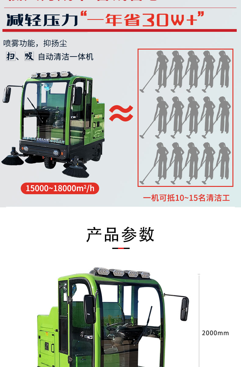 HRD-2000S全封閉駕駛式掃地車配置雙風(fēng)機(jī)系統(tǒng),具有強(qiáng)大的吸塵能力,清掃寬度大可達(dá)2米,一小時(shí)工作量相當(dāng)于6-8名清潔工的工作量,可連續(xù)工作6-8小時(shí),特別適合煤礦、水泥廠、雕刻廠、面粉廠、建材廠、金屬冶煉廠、工廠車間、商場(chǎng)、車站、廣場(chǎng)公園、景區(qū)等場(chǎng)所使用。